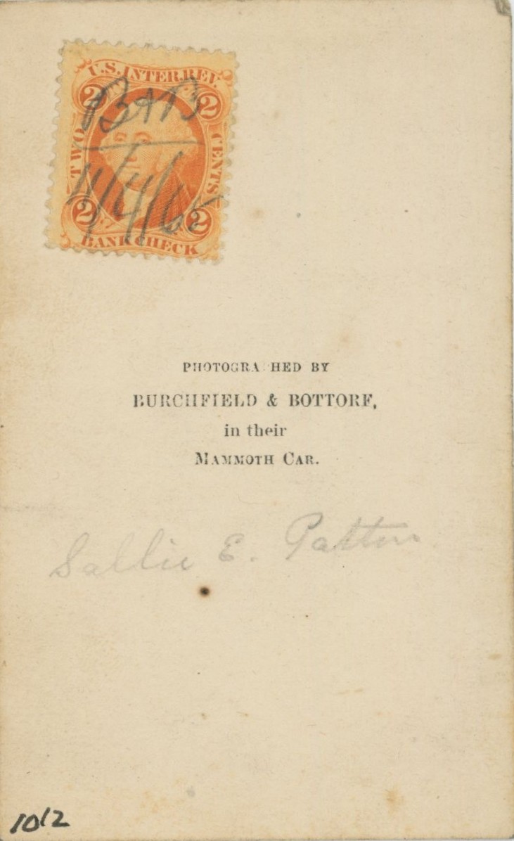 Private in Photo Rail Car with 5th Corps Badge The famed V Corps was one of the most renowned of the Army of the Potomac, including the "Iron Brigade" and Joshua Chamberlain's triumphant brigade at Little Round Top. This view is back marked Burchfield & Bottorf, In their Mammoth Car. Two cent orange Revenue stamp.