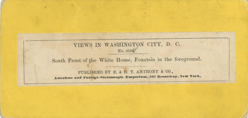 South Front of the White House A stereoview published by E& HT Anthony, New York.