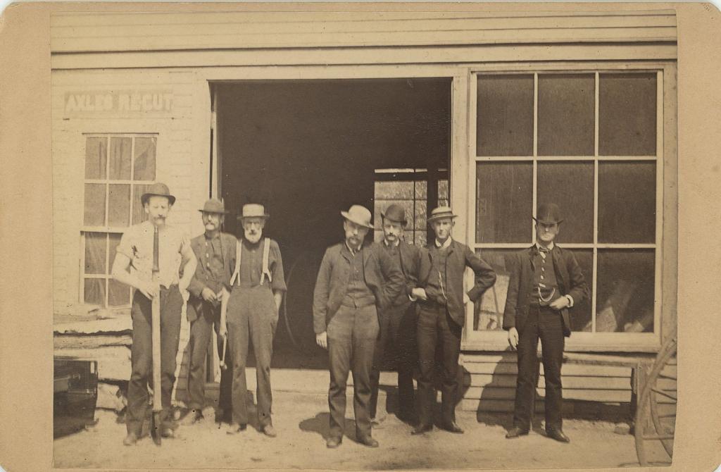 Wagon Axel shop outside their establishment, Note the man on the left is
